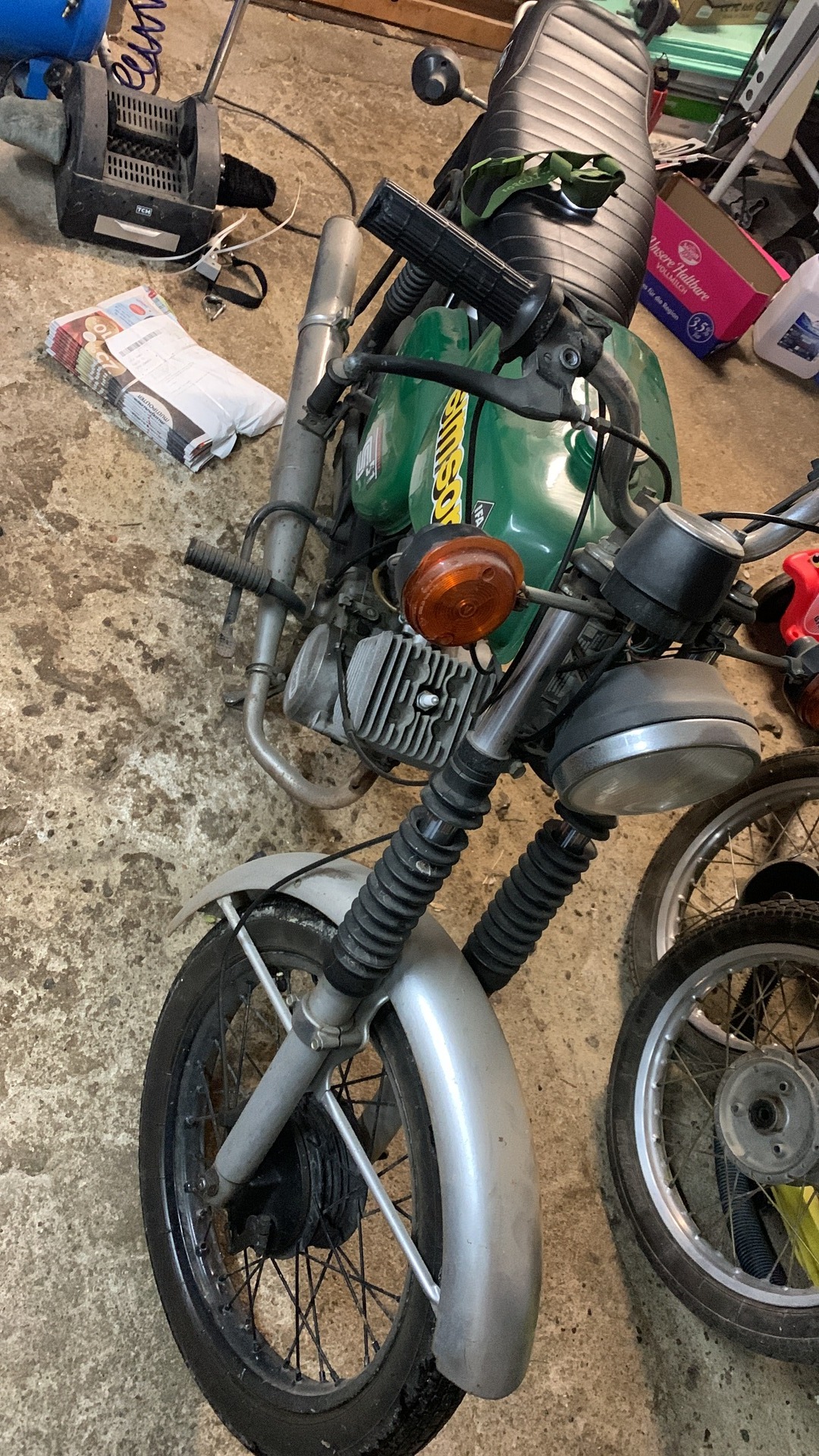 Ich spiel auch gerade mit den Gedanken, ein wenig zu Tunen, gekürzter Krümmer und ein paar "Optimierungen" am Auspuff, habe aber aktuell noch bange um meinen erst kürzlich erworbenen Autoführerschein. Ich habe meinen Simson Aufkleber auch mal zwischendurch abgemacht, da er nicht original war und ich gucken wollte ob noch was drunter ist, jetzt steht sie ohne da, werde aber vielleicht einen neuen Kaufen, aber diesmal als Abziehbild. Ansonsten hoffe ich, dass der Simson Rausch nachlässt, weil Fahren tut sie ohne diese ganzen Teile auch.