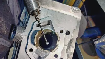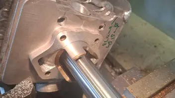 Eingebuchst habe ich den Zylinder im Januar, wie tief die Buchse sitzt hatte ich mir ja schon zurecht gemessen und errechnet sodas ich mich von innen langsam herangetastet habe an die Grenzen des Kühlkörpers.