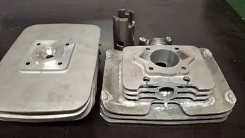 Sieht aus wie wenn eine Rippe des Zylinders beim Versand in die Brennraumglocke kam und geschabt hat oder etwas anderes. Popel da mal mit einem kleinen Schlitzschraubendreher, das du alles abbekommst was sich im Betrieb lösen könnte