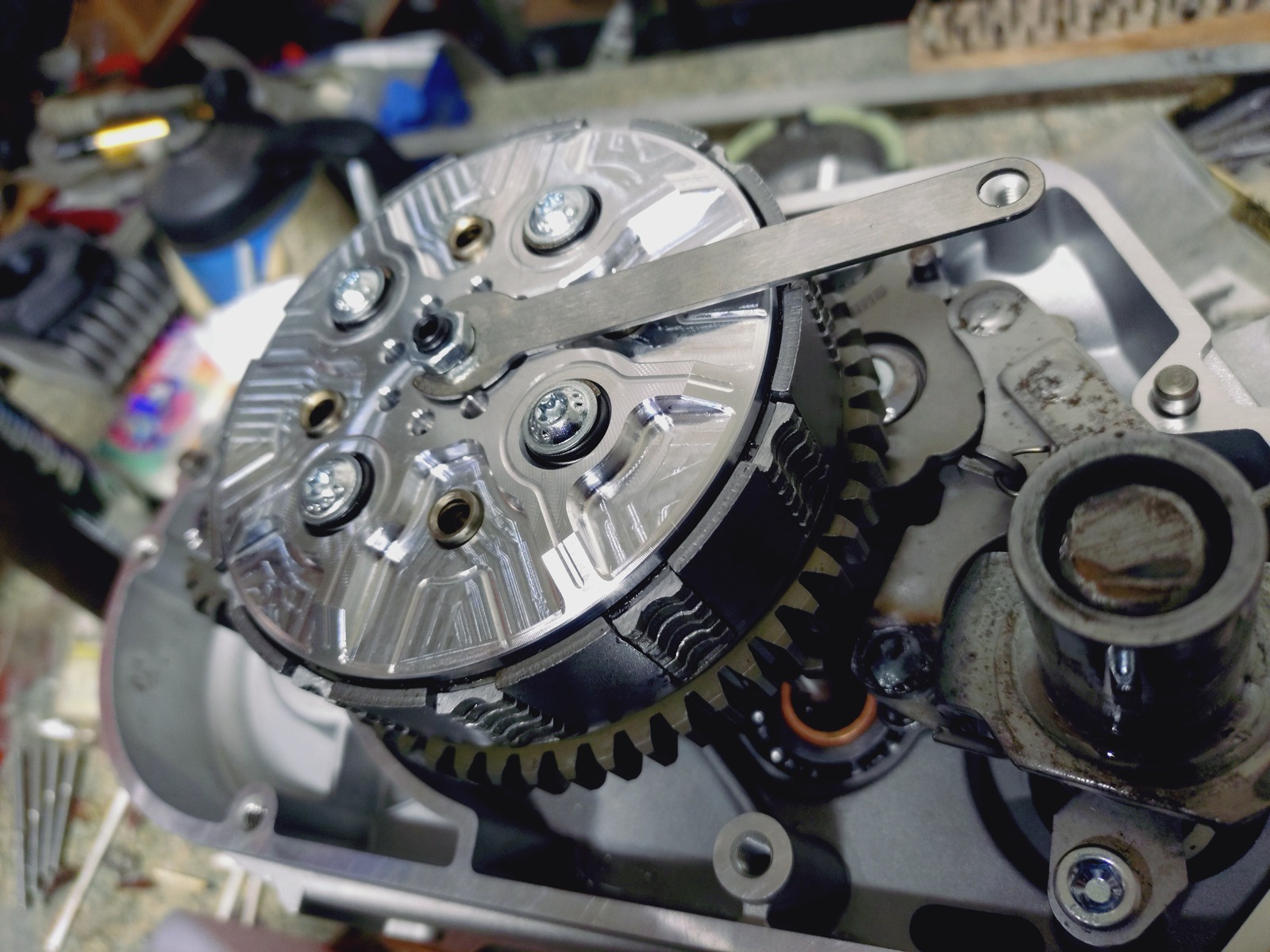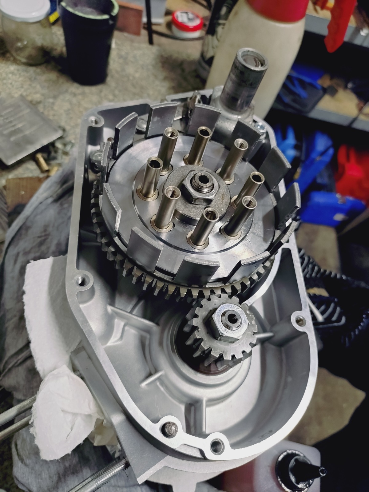 Der Rumpf ist fertig, es gab ein neues ZT Gehäuse, bestückt mit ZT 5-Gang und Langtuning Evo Kurbelwelle. Am Gehäuse ist nichts weiter bearbeitet, außer Gussrückstände. Ein kurzen 16:55 Ronge Primär hatte ich noch da, die Kupplung ist die X6 ebenfalls von Ronge.
