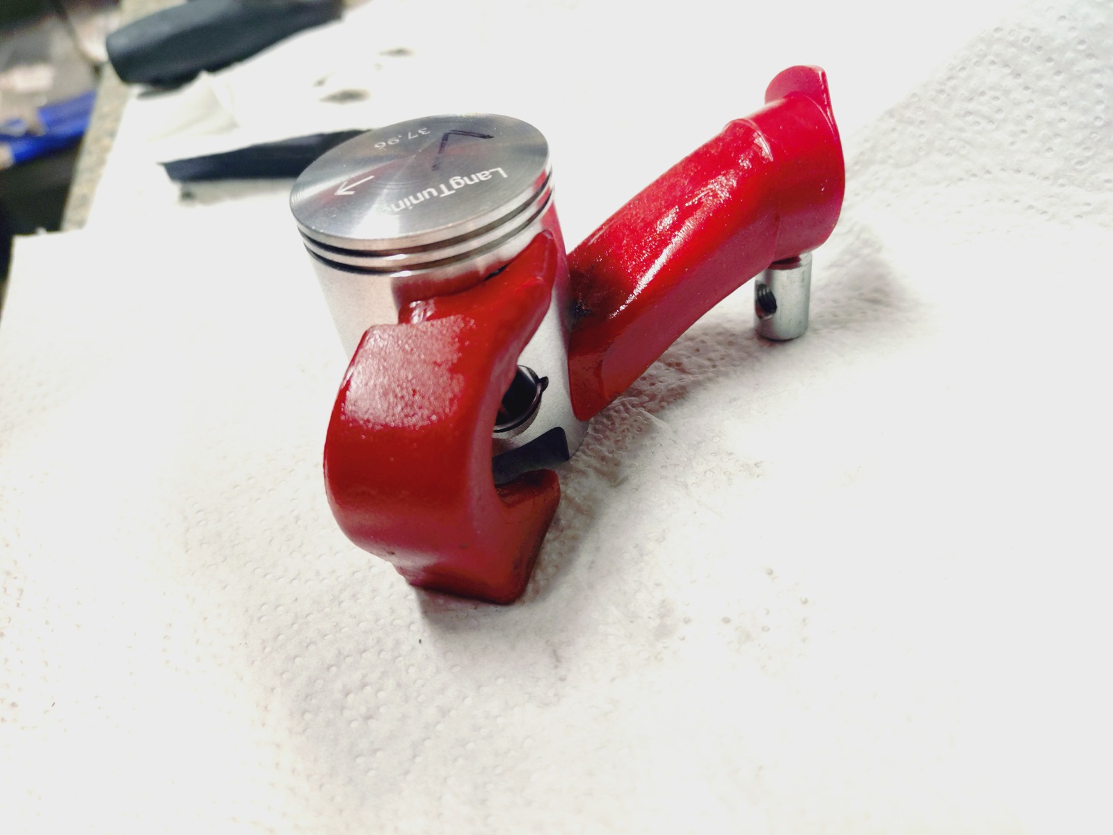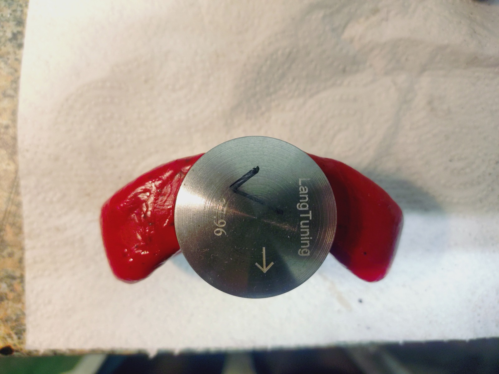 Heute hab ich ihn testweise auf den Unterbau gesteckt und mich gefreut, es ist kein Spacer notwendig, ohne Dichtung ist der Kolben OT gleich Buchsenoberkante. Das bedeutet für meine Quetschkante reichen die Papierdichtungen aus.