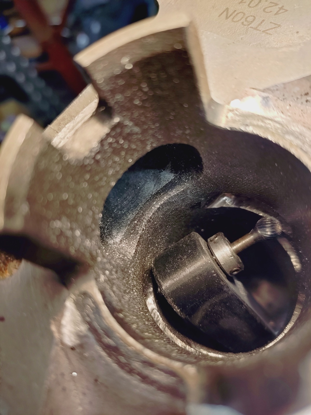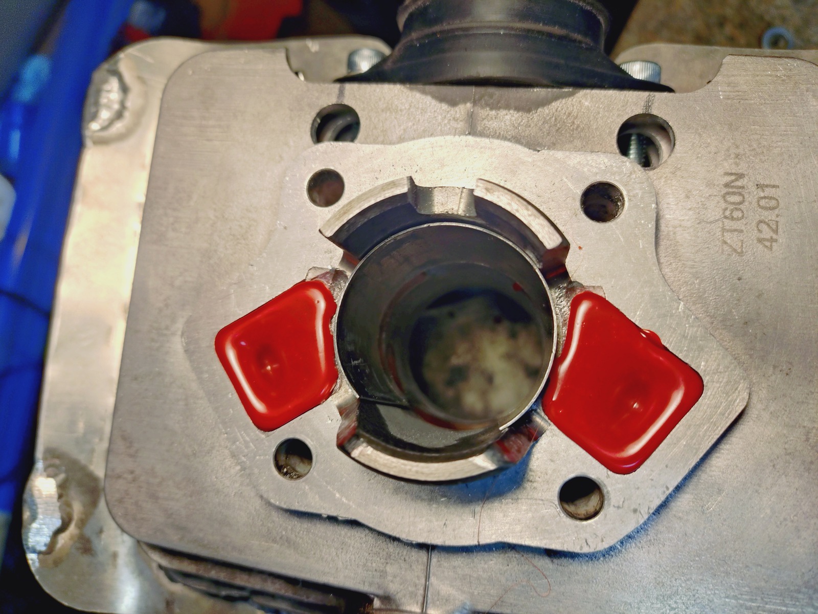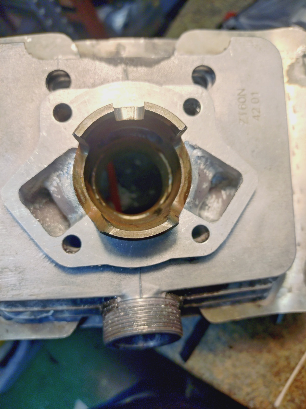 Der ZT60N hat gleich mal seinen Ansaugstutzen verloren und den Buchsenüberstand am Zylinderfuß.