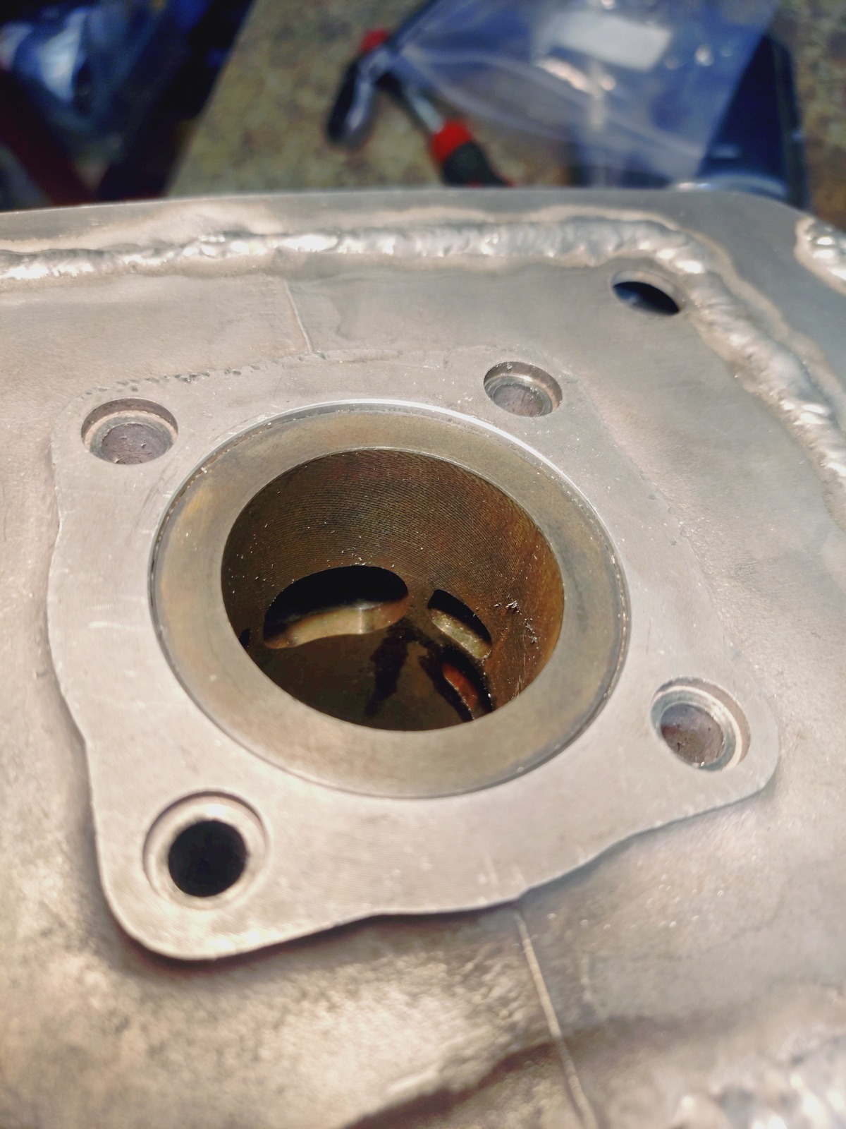 Das hab ich auch 2x getan, die Dichtfläche aufzuschweißen. Aber mein Aluschweißkönnen ist nicht das Beste. Ich hab es immer wieder weggefräst weil es mir nicht gefallen hat oder oder oder