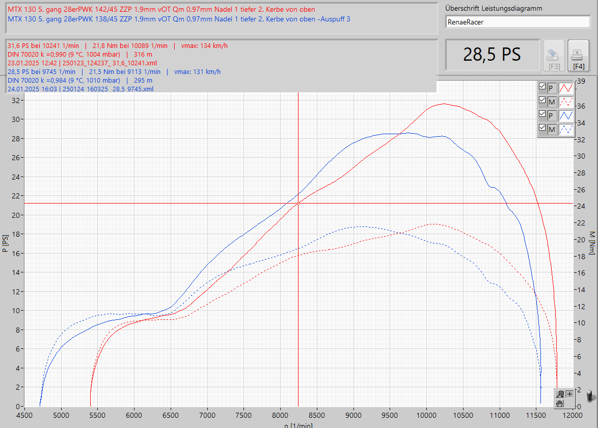 Heute konnte ich NOCHMAL Leistung im vorderen Bereich des Leistungsbandes finden. Ich habe den 34er Vergaser samt VForce3 aus dem Harzringmoped angebaut.