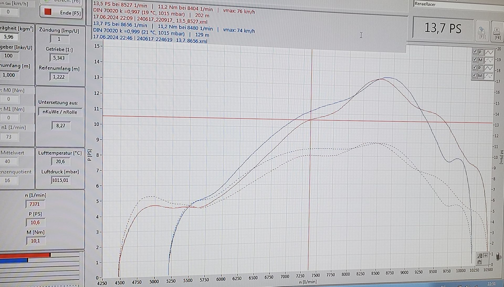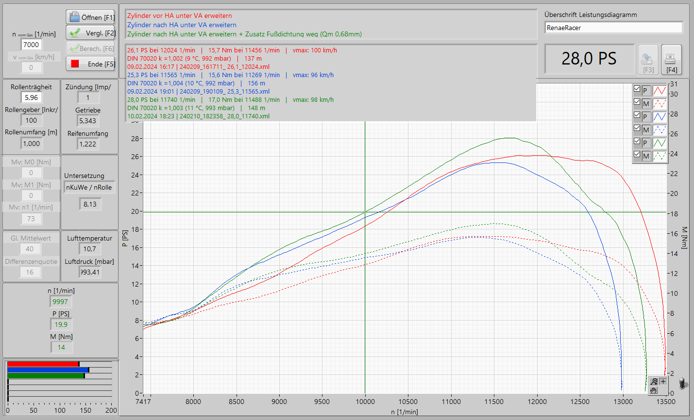Schau dir mal das Diagramm bei 9:28 an, wo die Vergleichsmessungen mit der angeblichen Mehrleistung übereinander liegen. Fällt dir nicht auf, dass die Verlustleistung mit dem LTPA- Kolben geringer ist? Verschiebt man die blaue Kurve so weit nach unten, dass sie auf der Roten liegt- also beide Kurven mit identischer Verlustleistung- ist der Vorteil minimal (~0,2PS zwischen 6200-6600 u/min). Davor und danach ist es noch weniger. Vor dem Leistungspeak sogar schlechter!