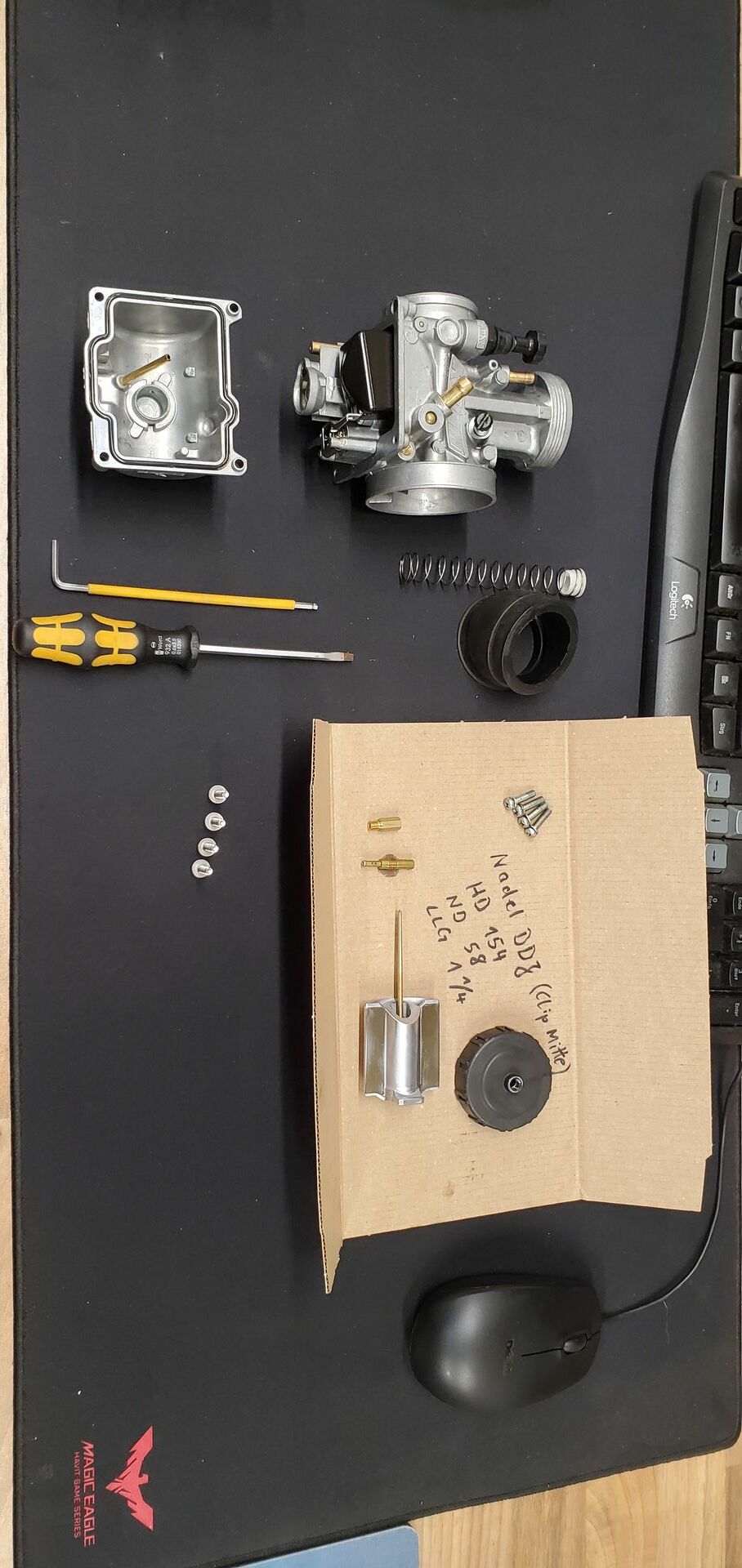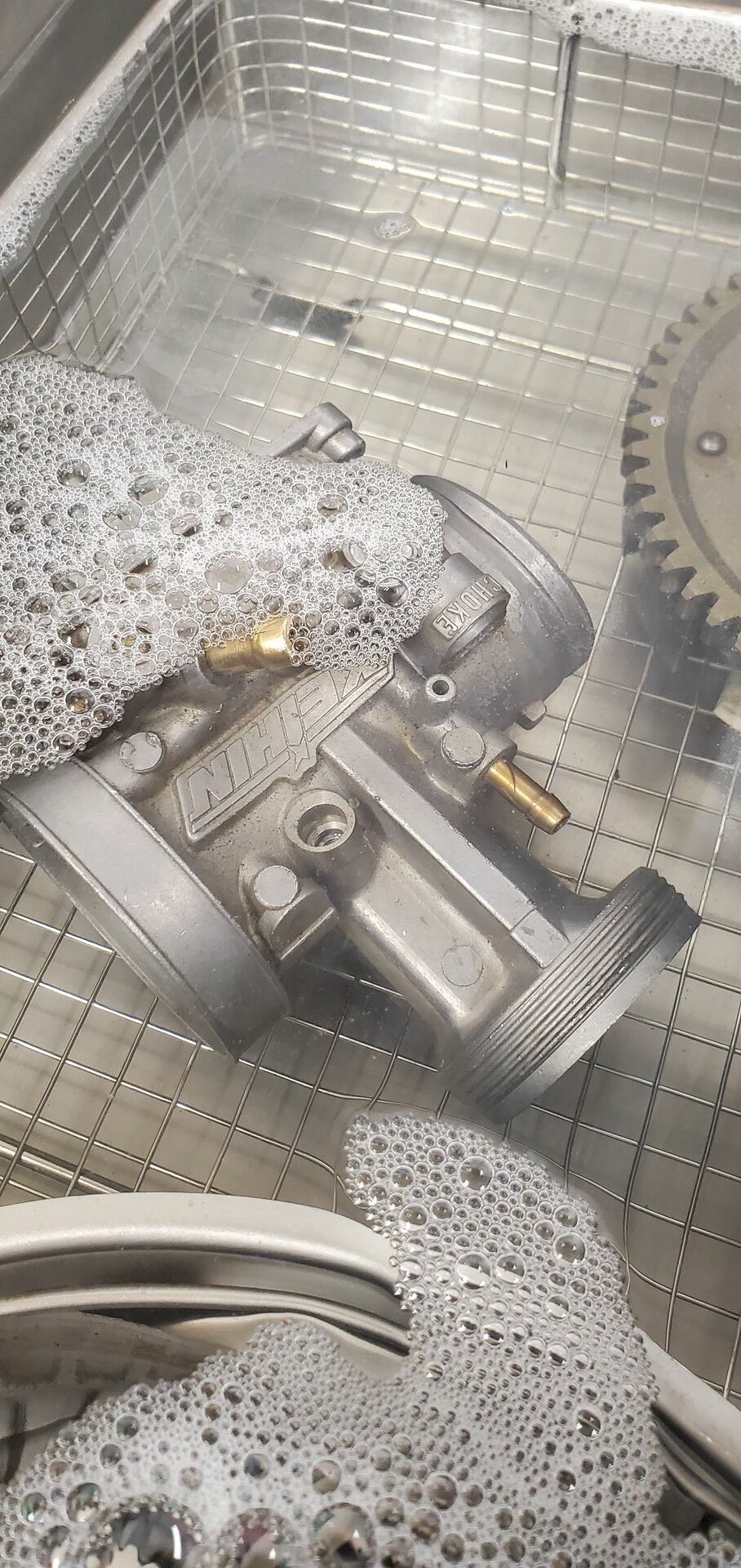 Also Vergaser zerlegen, neues Reinigungsmittel in das U-Bad und ab dafür- sieht wieder aus wie neu!