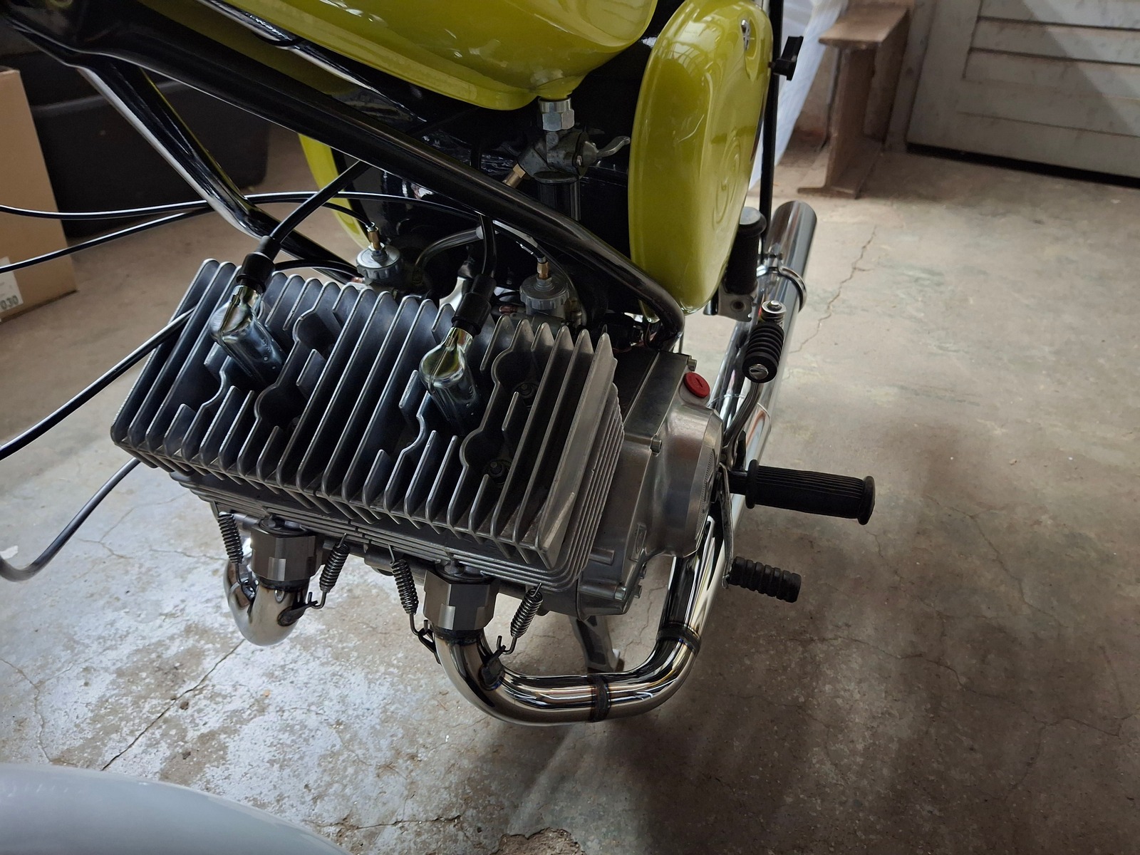 Räder neu eingespeicht, Reifen aufgezogen und erste Probefahrt gemacht. Als nächstes kommt alles wieder auseinander und wird noch neu lackiert.