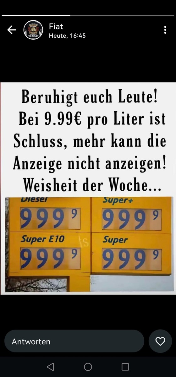 Da werde ich wohl zum Tanken nach Polen fahren ..