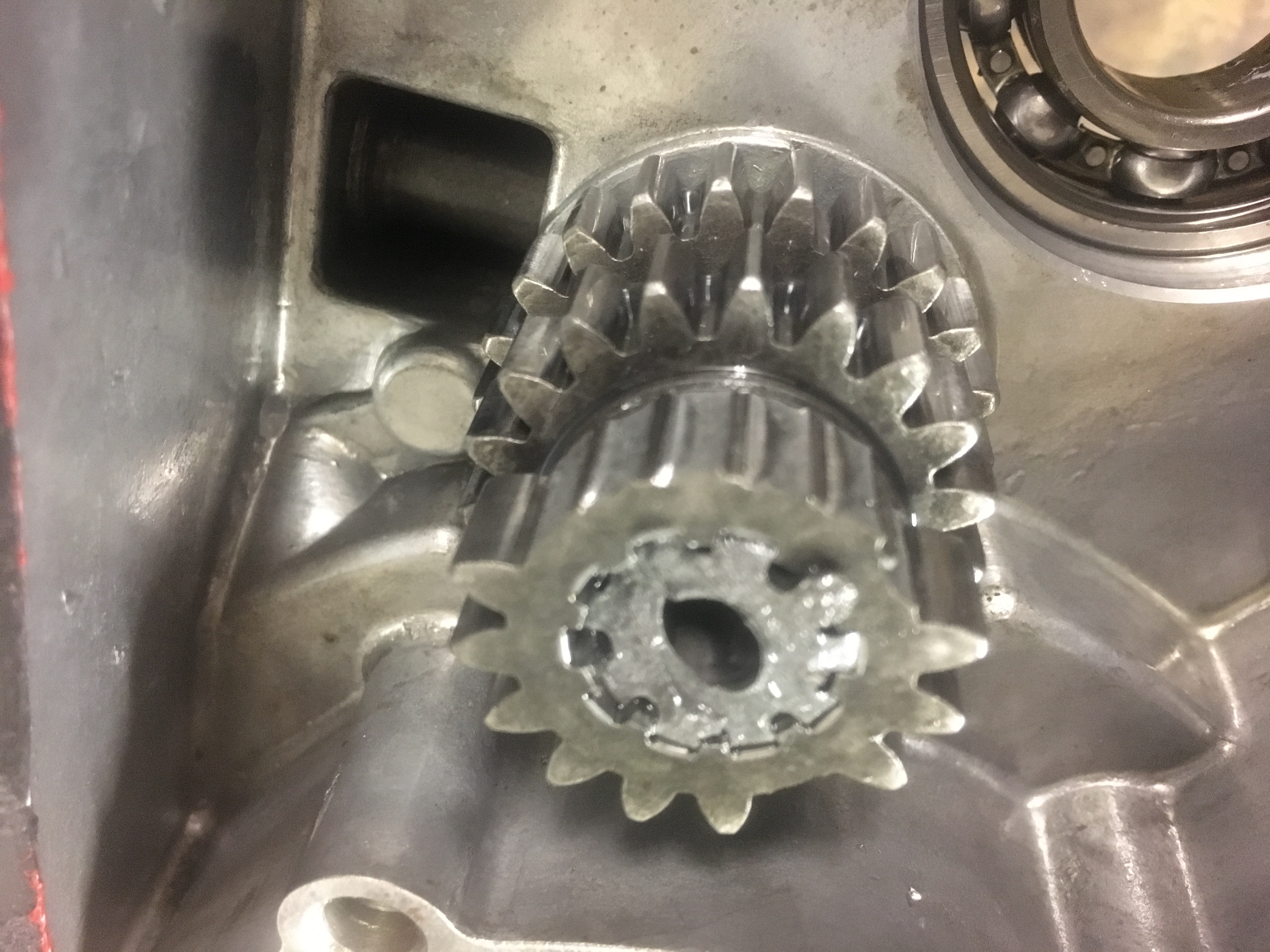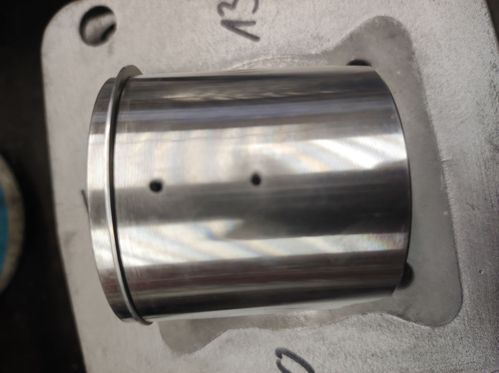 Zylinder würde zunächst um 0,5mm abgedreht und auf einem Gehäuse mit 0,35 Dichtung montiert. Kolben ist nun bündig. Kolben steht im UT nun auch schöner an der Strömerunterkante.