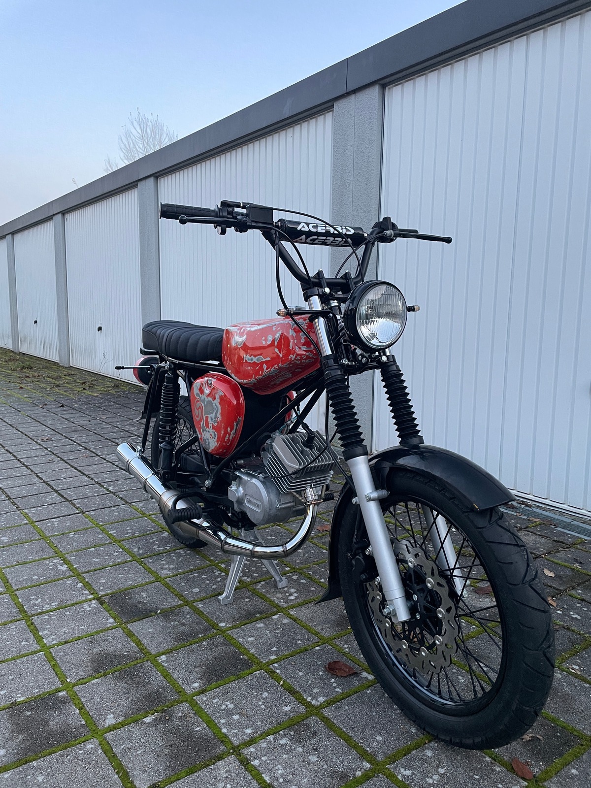 21er Abnahme, Geräuschmessung und Leistungsmessung nehmen einige Zeit in Anspruch, außerdem lag Salz und stellenweise Schnee auf der Straße, deswegen muss das Moped einige Zeit bei Tommy bleiben. Wenn ich News hab berichte ich natürlich ![]()