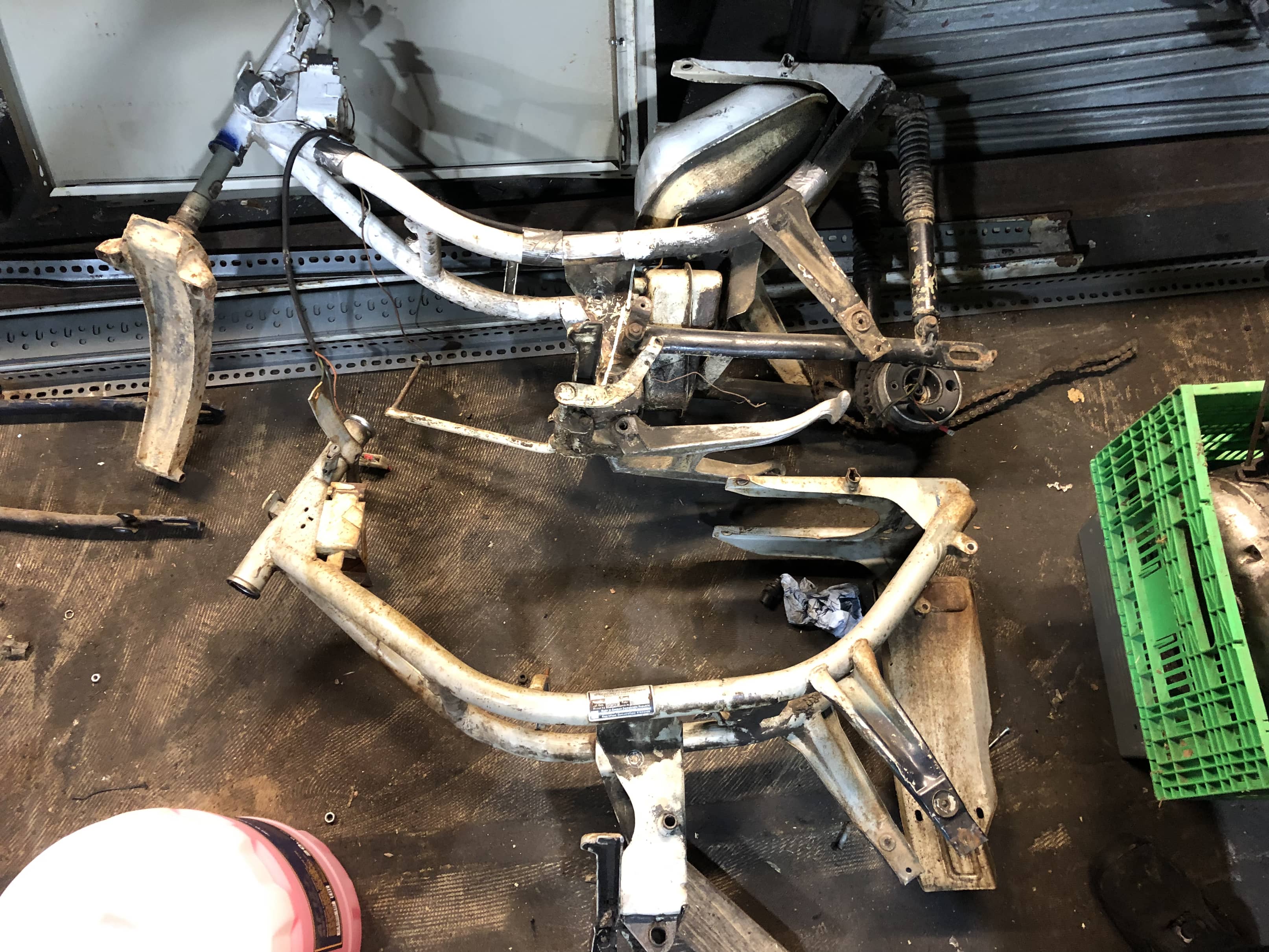 Einer der Rahmen stammt von einer KR 51/1, sowohl Typenschild als auch Aufbau des Rahmens scheinen dafür zu sprechen, aber ich kann beim besten Willen den zweiten (auf den Bildern unteren) Rahmen nicht zuordnen. Laut Typenschild ist es eine KR 51/2 und auch die eingestanzte Rahmennummer passt zum Typenschild. Aber laut allem was ich nun gelesen habe, gab es bei der 2er die Halterung für den Zylinder(-Kopf) nicht in der Form wie er hier ist. Die Aufnahmen für die hinteren Dämpfer sind auch anders, sowie die gesamte Konstruktion im Bereich des Hauptständers.Kann mich jemand eventuell erleuchten und hat noch andere Indizien um genau sagen zu können, worum es sich hier handelt?