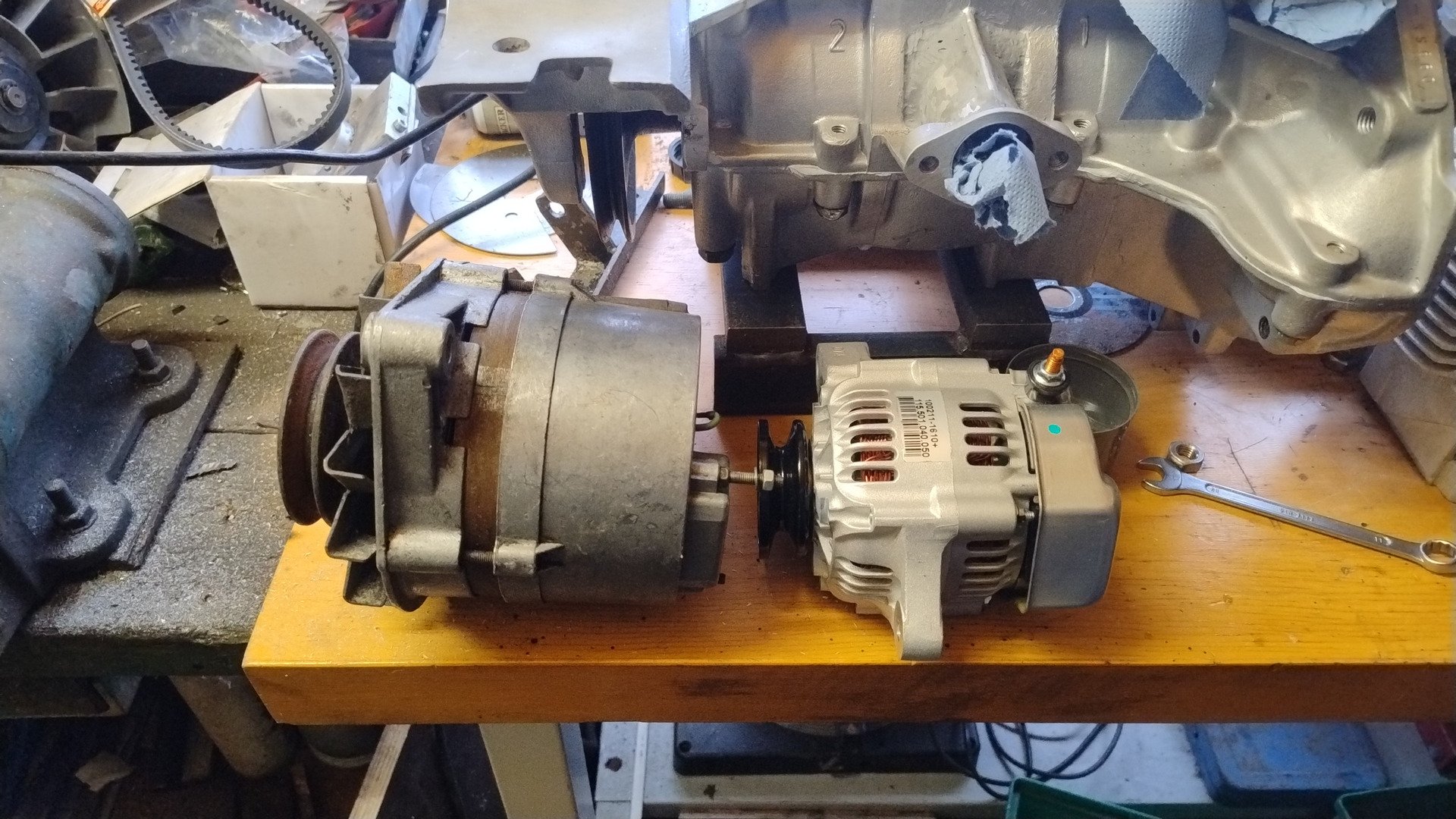 Ja, ich werde die Riemenscheibe noch umbauen. Mein Gedanke ging da aber eher in eine andere Richtung. Die Lima ist ja von einem Diesel Japaner. Bei der Größe der Riemenscheiben hätte ich Angst, dass es die Lima auf Vollgas zerdreht