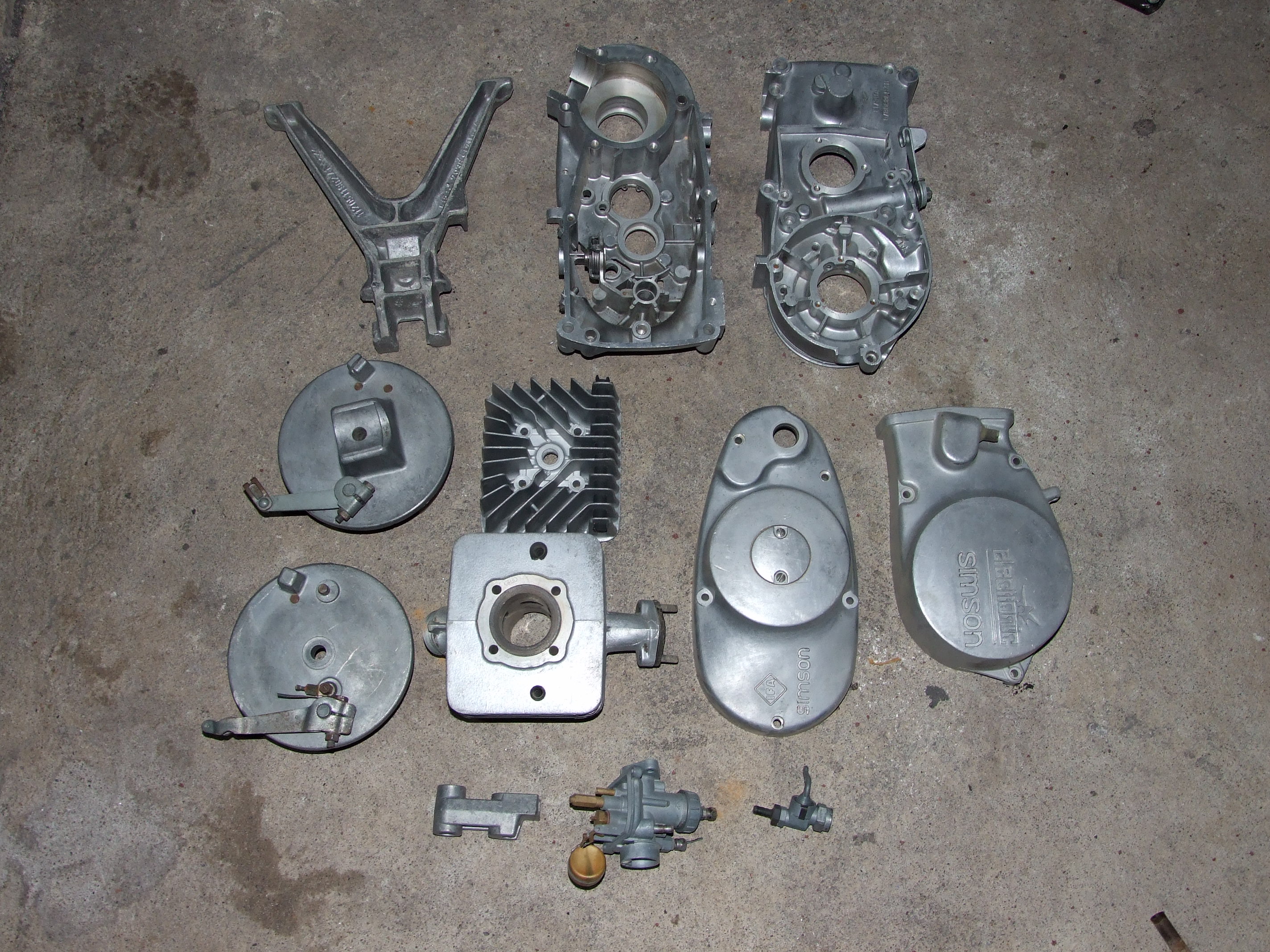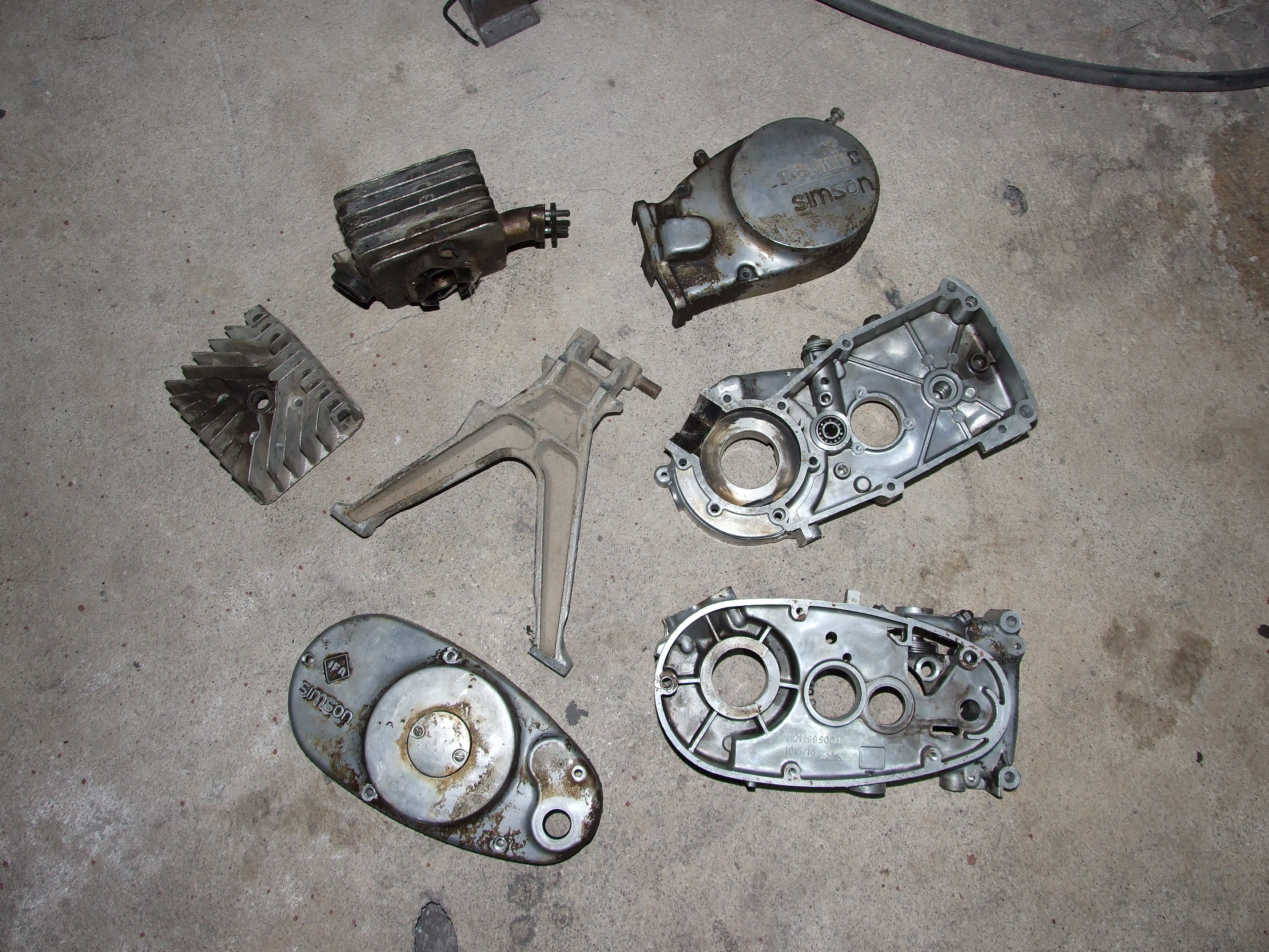Der Rahmen hat natürlich einen Riss unten am Fuß, die Gabel ist hinüber und der Rest auch ziemlich verbraucht. Heute habe ich dann die Motorteile mal mit Nussschalen gestrahlt (nachdem sie gestern mit einem Heißwasserkärcher schon mal vorgereinigt worden sind)...das macht mir immer wieder Spaß, da die Teile danach aussehen, als kämen sie neu aus dem Regal und die Oberfläche ist nicht so empfindlich wie mit Glasperlen