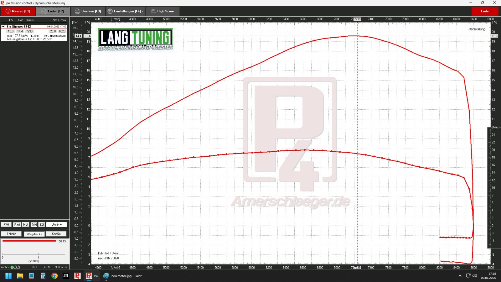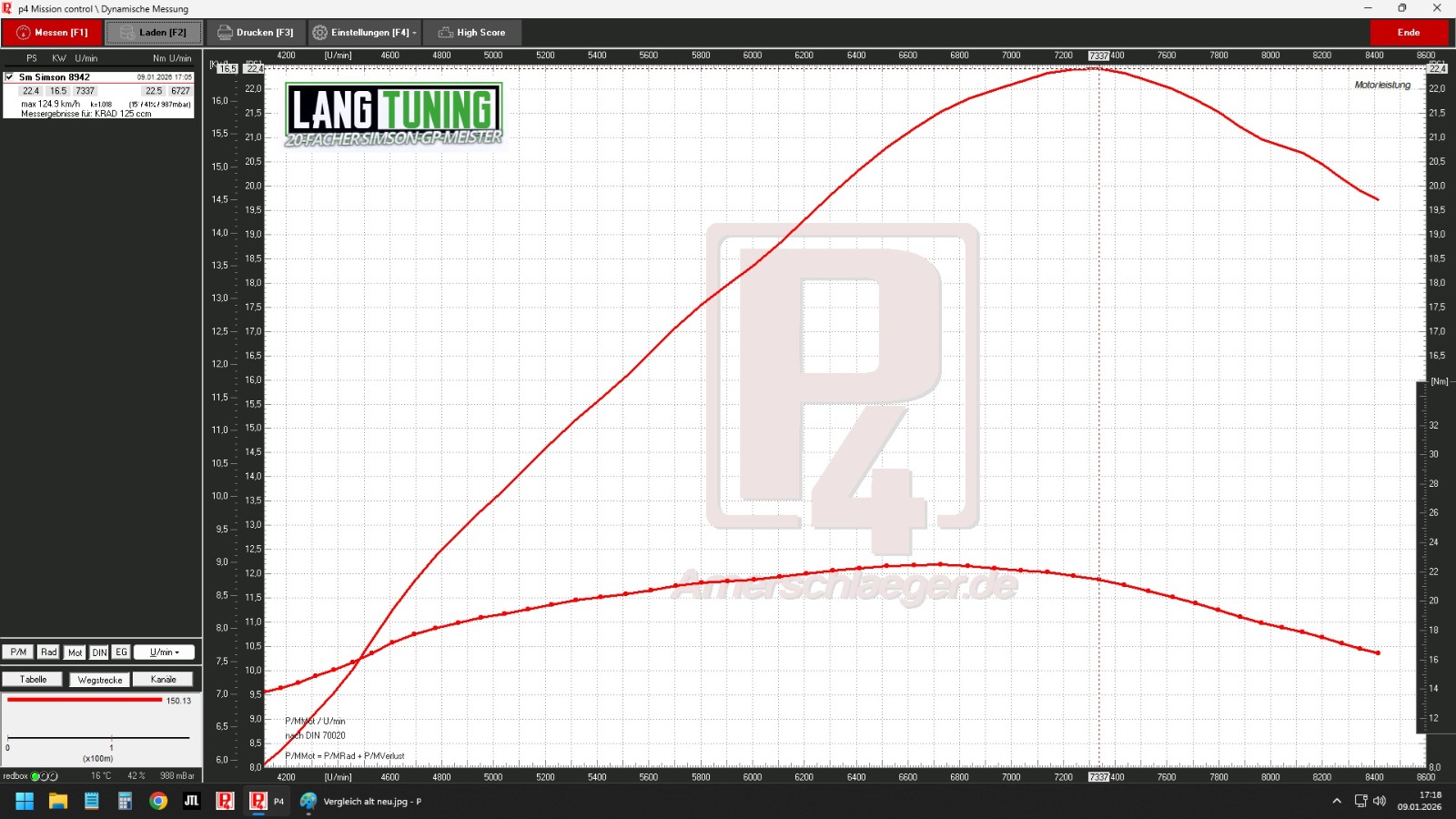 2. Die in den Leistungsdiagrammen ausgewiesenen Drehzahlen sind bei Beschleunigungszeiten gemessen, welche auf der Straße im letzten Gang i.d.R. anders, d.h. viel länger sind. Aus diesem Grund ergibt sich hier ein wesentlicher Fehler, der jedoch in der Natur der Sache liegt und den man auch nicht umgehen kann. Wir setzen bei der Messung auf dem Prüfstand hier min. 5-7 Sekunden Beschleunigungszeit (gemessen von Bandbeginn bis Beginn der Schleppmomentmessung) an. Erfahrungsgemäß ergibt sich bei diesen Beschleunigungszeiten ein halbwegs vernünftiges Bild. Dennoch passt dieses Bild nicht immer. Warum? Beim Zweitaktmotor wird der Überdrehbereich (sehr wichtig für die sich ergebende Höchstgeschwindigkeit) sehr wesentlich von der Abgastemperatur bestimmt. Die Abgastemperatur wird neben anderen Punkten wiederum sehr wesentlich von der Beschleunigungszeit bestimmt. Das heist: je länger die Beschleunigungszeit ist, desto höher wird die Abgastemperatur und desto weiter verschiebt sich das Drehzahlband (und der Überdrehbereich) in höhere Drehzahlen. Ob die Leistung dabei mit steigt oder gar fällt, ist eine andere Frage. Welche Auswirkungen hat dieser Zusammenhang auf die Praxis und warum spreche ich das hier an? Die im Shop angegebenen Leistungskurven beschreiben die Leistungsfähigkeit des Motors bei der besagten Beschleunigungszeit unter Messbedingungen. Da die Beschleuningungswerte bei Vollgasfahrten im letzten Gang i.d.R. gänzlich anders, d.h. viel länger sind, kann man nicht davon ausgehen, dass der Motor hier exakt das selbe Verhalten mit Blick auf Leistung und Drehzahlen hat, wie es das Diagramm verheist. Das gehört (leider) zur Wahrheit mit dazu. Man sollte die Leistungsdiagramme mit Blick auf die max. erreichbare Endgeschwindigkeit deshalb aus meiner Sicht nicht überbewerten.