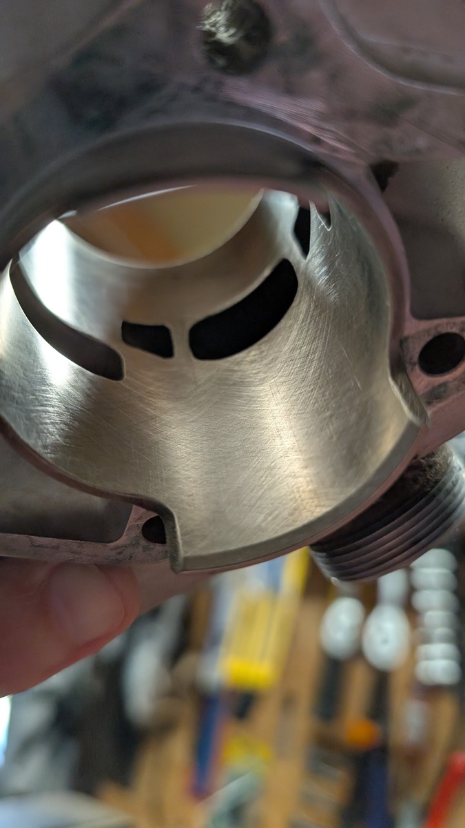 Der Kolben ist nun 2/100 größer als der vorherige Kolben. Der Ring-Pin schaut ähnlich weit heraus.