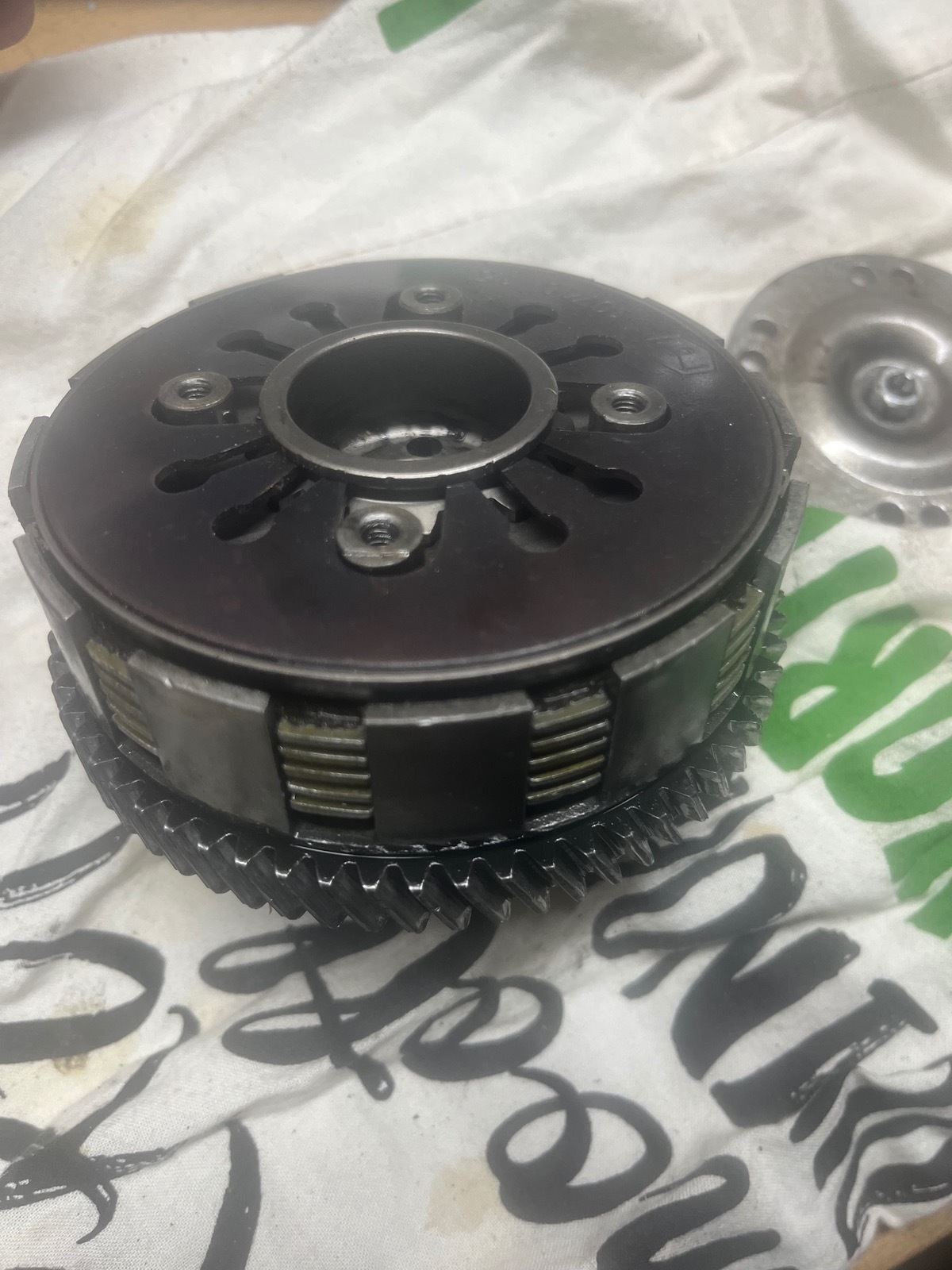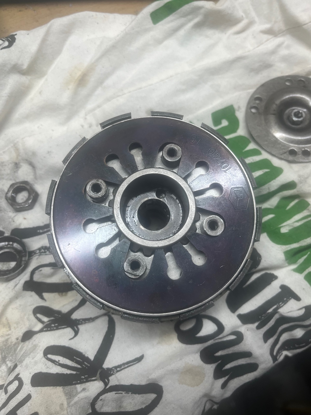 Ich hänge mal ein paar Bilder an, wo man die druckplatte sieht und komischen Spuren. Kann mir hier vlt. Jemand schon Infos über die Kupplung geben, ob ich direkt was neues bestellen kann oder man da noch was machen kann. Und kann die lose 20er Mutter schon die Ursache sein?Bitte entschuldigt die bestimmt nicht ganz richtigen Begriffe, hab den Motor damals machen lassen weil ich mich nicht ran getraut habe und habe die letzten 4 Jahre fast gar nicht mehr geschraubt.