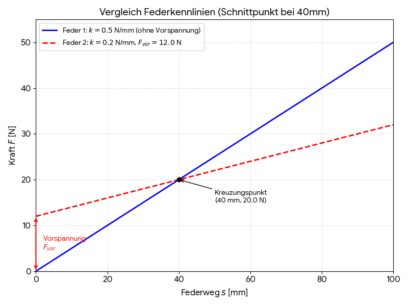 oel666 Kann ich leider nun nur bestätigen, bei normaler Straßenfahrt sind sie so gar anscheinend erstmal etwas härter durch die starke Vorspannung. Ich habe mal ein allgemeines Diagramm dazu erstellt. Ich vermute, dass die Feder zwar weicher ist, aber durch die Vorspannung das erst bei starker Belastung zu spüren ist. Der Schnittpunkt mit meiner bisherigen Feder kommt wahrscheinlich zu spät. Beim Fahren war es so, dass die Fahrt auf einem rauhen, selbverfestigten Asphalt-Schotterweg sich mit der Schwarz Feder smooth anfühlte und mit LT war das nicht der Fall. Als bliebe ich bei der Schwarz Feder. Nur bei starken Schlägen, wie z.B. von Gullideckeln, hätte ich mir mehr erwartet. Da ist noch nichts zu weich.