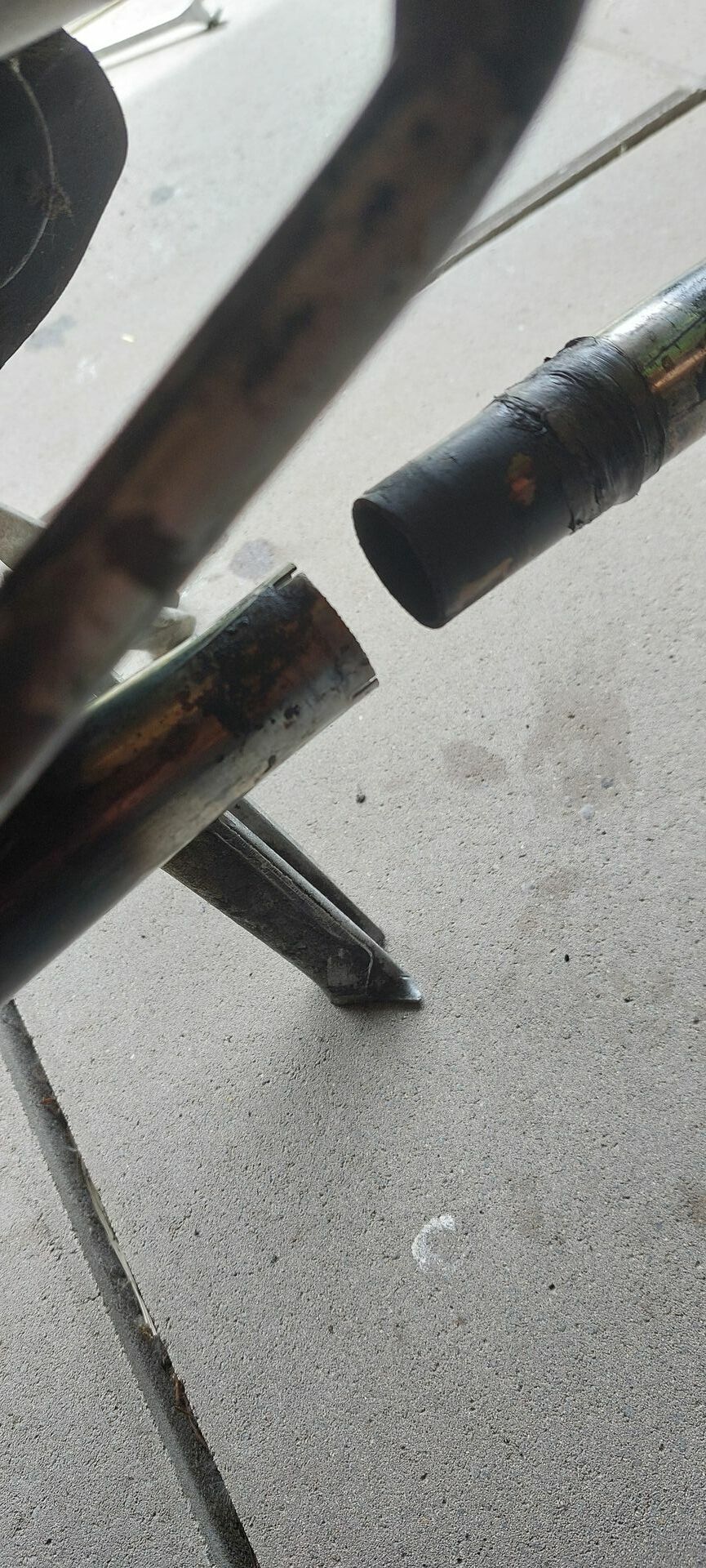 ich hab eine frage bezüglich der Verbindung von auspuff und Krümmer (Bild 1). Was für ein Band/Tape macht man dort am besten drum herum, da das vorherige Band/Tape schon gerissen ist (Bild 2)?