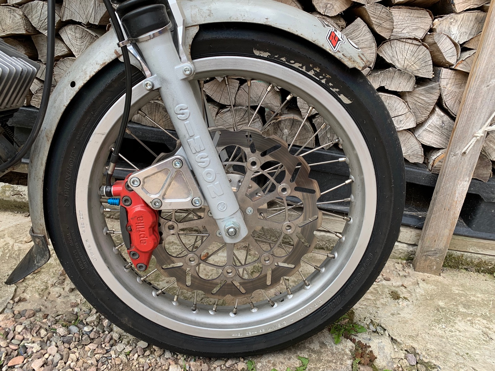 hier im Bild ist eine 280mm Bremsscheibe mit Aprillia Bremssattel an einer Simson SB-Gabel verbaut. Ohne Adapter passt da nichts. ![]()