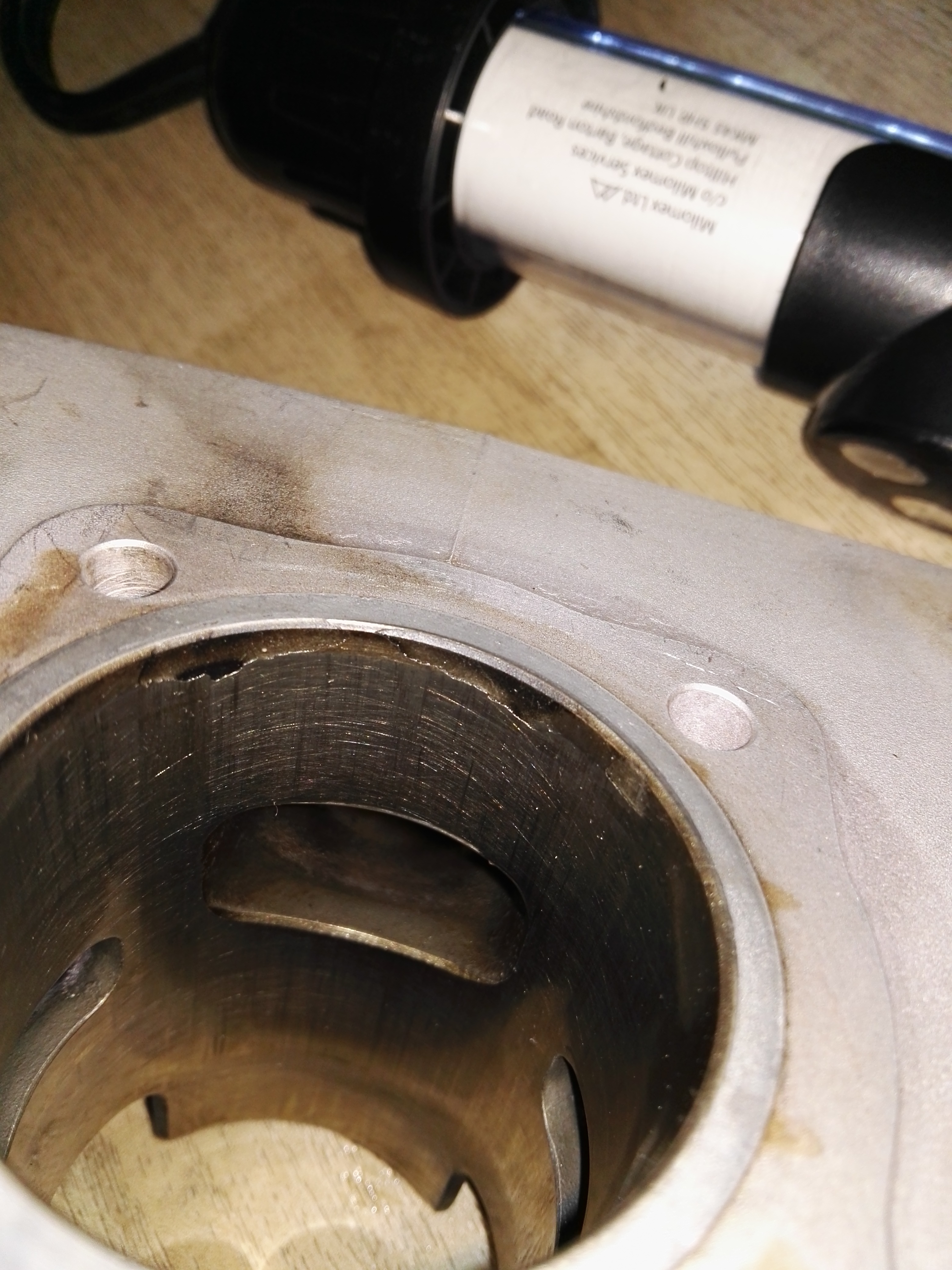 Ich bin den Zylinder jetzt knapp 200km gefahren, am Anfang war auch alles gut. Heute musste ich dann ein lautstarkes klappern feststellen. Habe daraufhin gleich den Zylinder gezogen und musste feststellen das die Beschichtung an der Oberkante der Buchse komplett abgeplatzt ist. Der kolben hat nun riefen durch die gelöste Beschichtung. Ich kann mir beim besten Willen nicht vorstellen wodurch das kommt. Soll es ein Montagefehler meinerseits sein? Das kann ich mir nicht vorstellen.