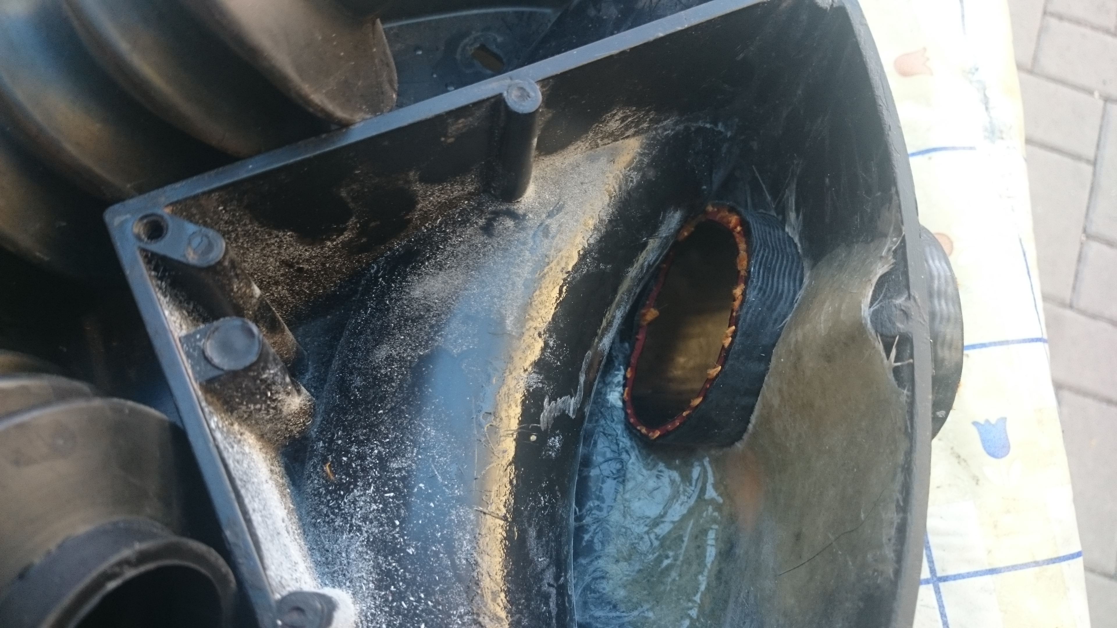 Hoffe die Bilder gehen habe das bei mir mit gfk gemacht sprich original Loch zu und dann ein neues mit Turboschlauch gemacht seht selbst wer an sowas Interesse hat kann sich Per pn melden mache das beruflich