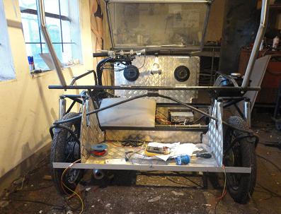 Hier mal zwei Bilder: von hinten und die Lenkung