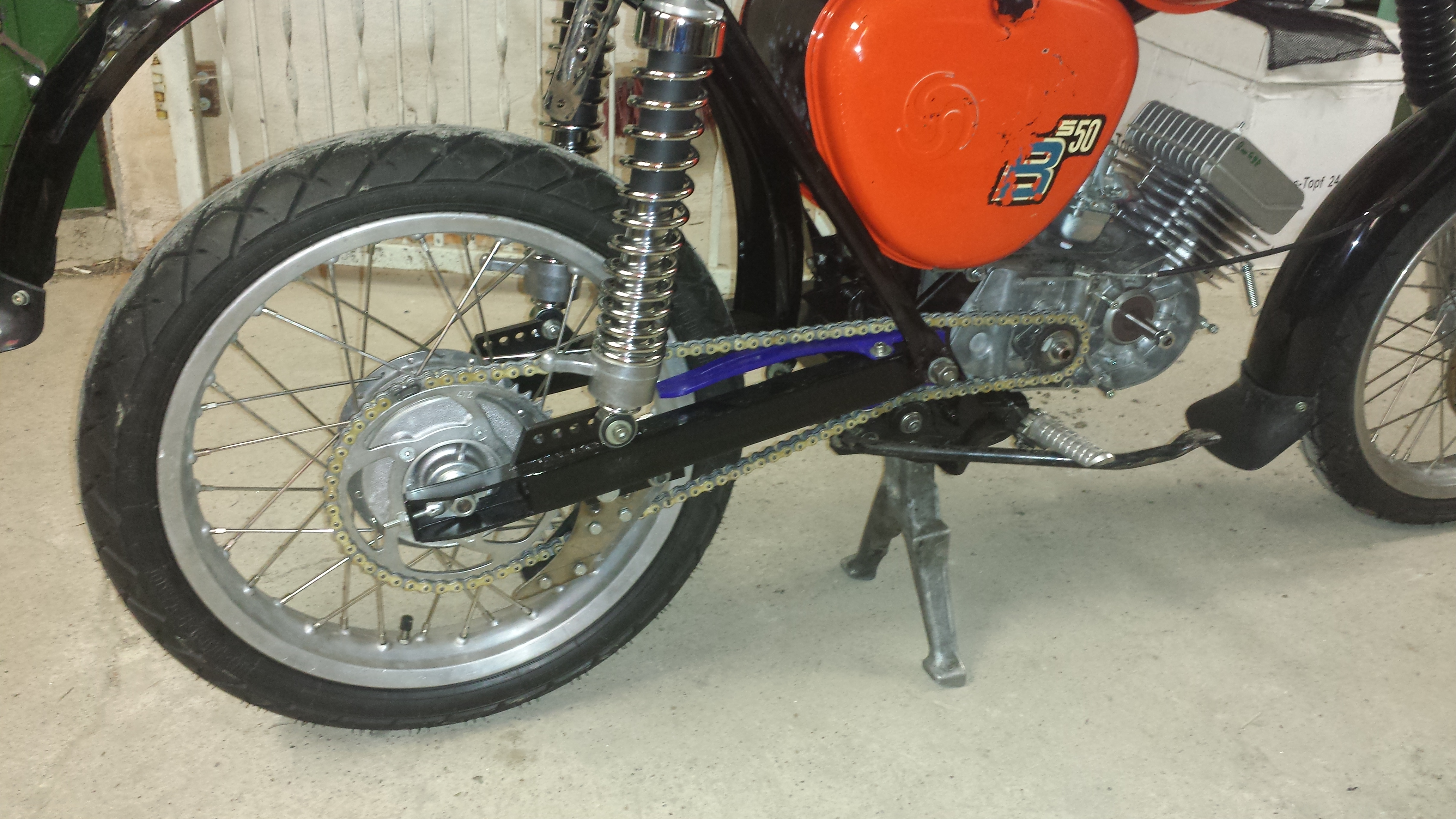 Kastenschwinge ist m.M. nach ein Muss für alle die sportlich unterwegs sind ....im Straßenmoped mit original Länge und im Crossmoped 5cm länger