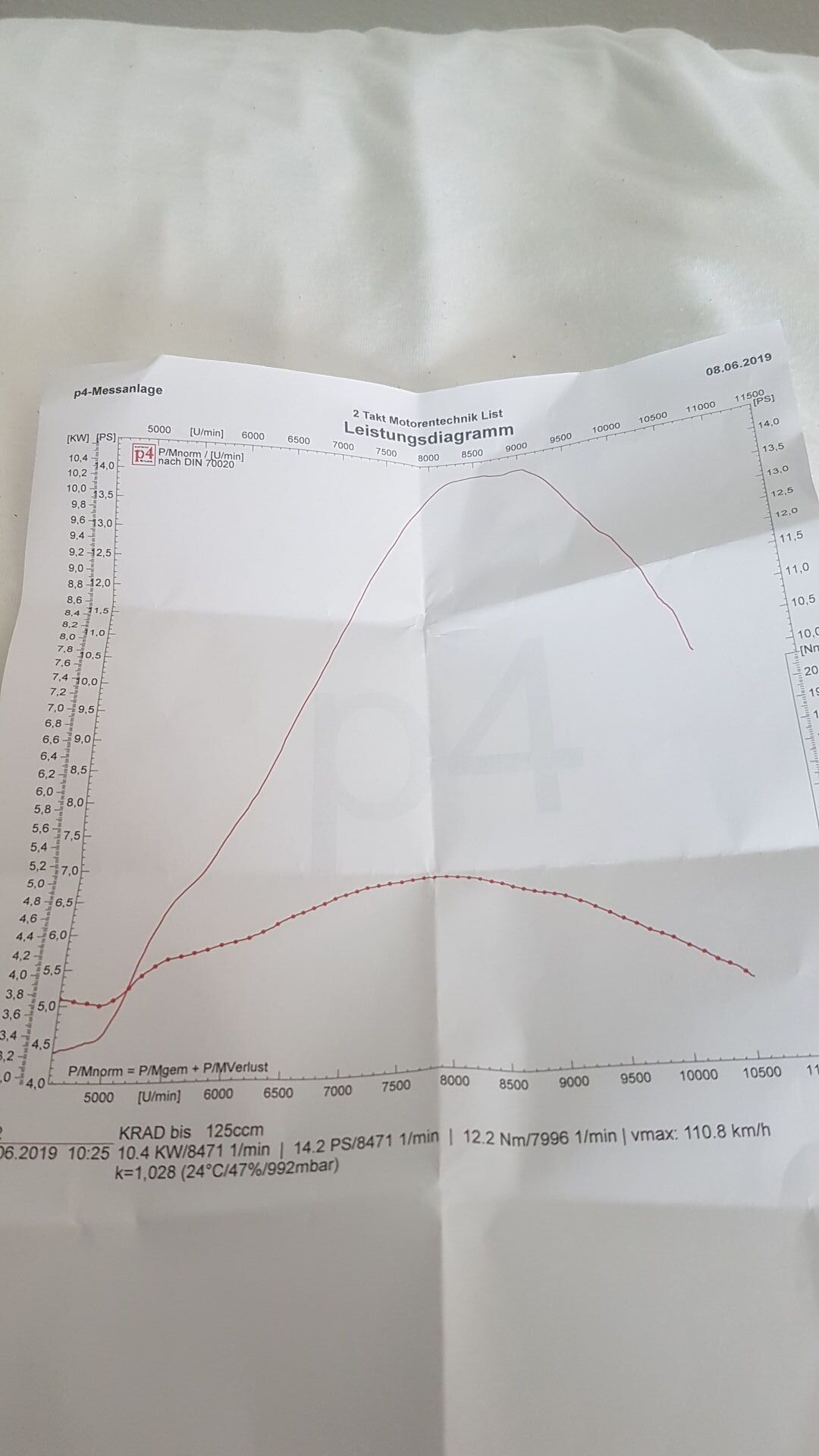 Also Leistungsabnahme(fährt großen Fächer) kann mein Kollege nicht sagen . Nach einer Stunde Fahrt und danach gleich Prüfstand .....solide 21,5 ps am Rad.