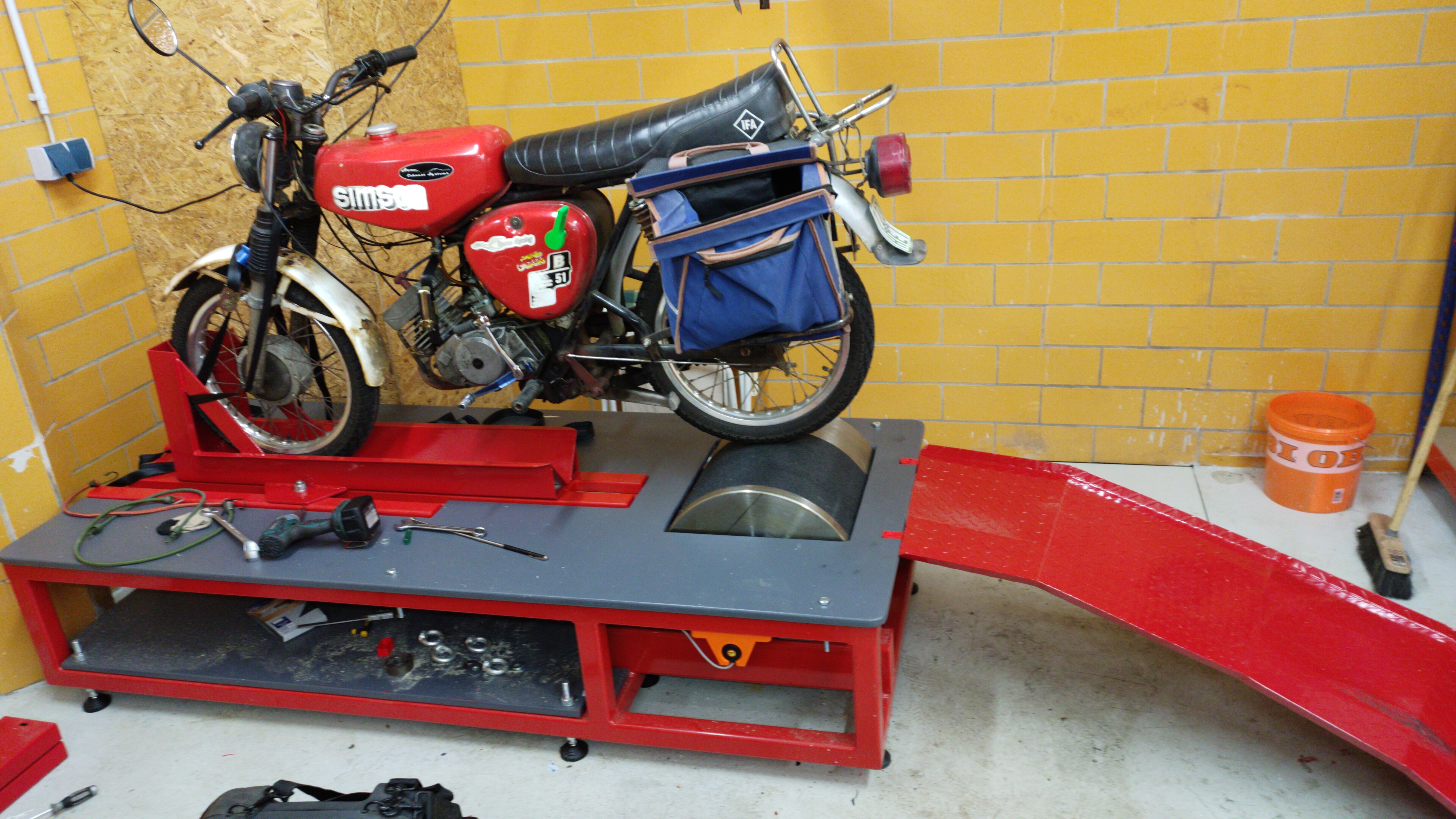 Ich hab mich mal um mein vorderradhalterhochfahrendes Moped gekümmert (links vorher) und darum,